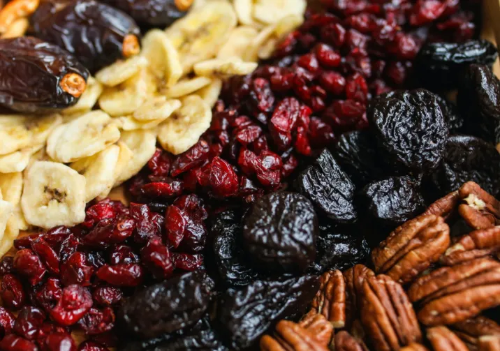 - Commercial Dried Fruits: apple chips, banana chips, mango slices, raisins, dried persimmons.